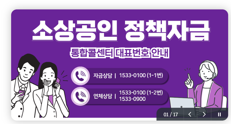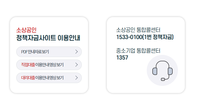 소상공인 통합콜센터1533-0100(1번 정책자금)중소기업 통합콜센터1357
