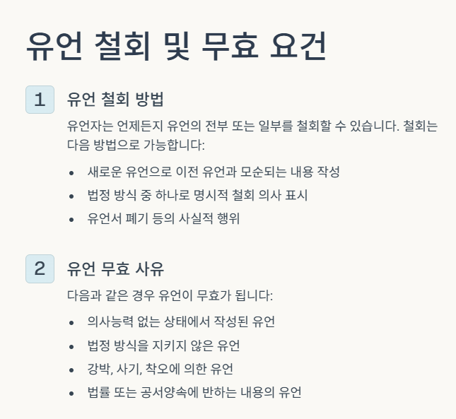 무효가 되는 유언도 있는데요, 형식이 제대로 갖춰지지 않았거나 유언자가 인지 능력이 부족한 상태에서 작성한 경우에는 법적으로 무효가 돼요. 예를 들어, 자필 유언장을 작성했는데 날짜가 없거나 도장이 빠졌다면 효력을 인정받지 못해요.
